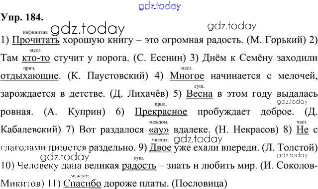 На страницах сайта gdz.today вы найдете учебный и вспомогательный материал, направленный на улучшения знаний школьной программы. ГДЗ - онлайн мир знаний Упражнения Часть 1 (решение) 184 Учебнику по Русскому языку для 8 класса Быстрова, Кибирева Русское слово Инновационная школа 2019