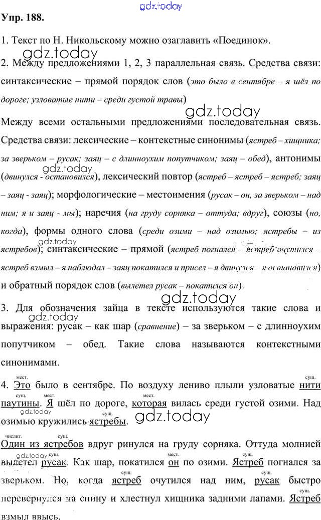 На страницах сайта gdz.today вы найдете учебный и вспомогательный материал, направленный на улучшения знаний школьной программы. ГДЗ - онлайн мир знаний Упражнения Часть 1 (решение) 188 Учебнику по Русскому языку для 8 класса Быстрова, Кибирева Русское слово Инновационная школа 2019