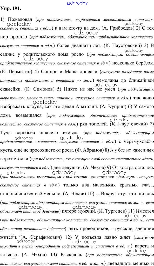 На страницах сайта gdz.today вы найдете учебный и вспомогательный материал, направленный на улучшения знаний школьной программы. ГДЗ - онлайн мир знаний Упражнения Часть 1 (решение) 191 Учебнику по Русскому языку для 8 класса Быстрова, Кибирева Русское слово Инновационная школа 2019