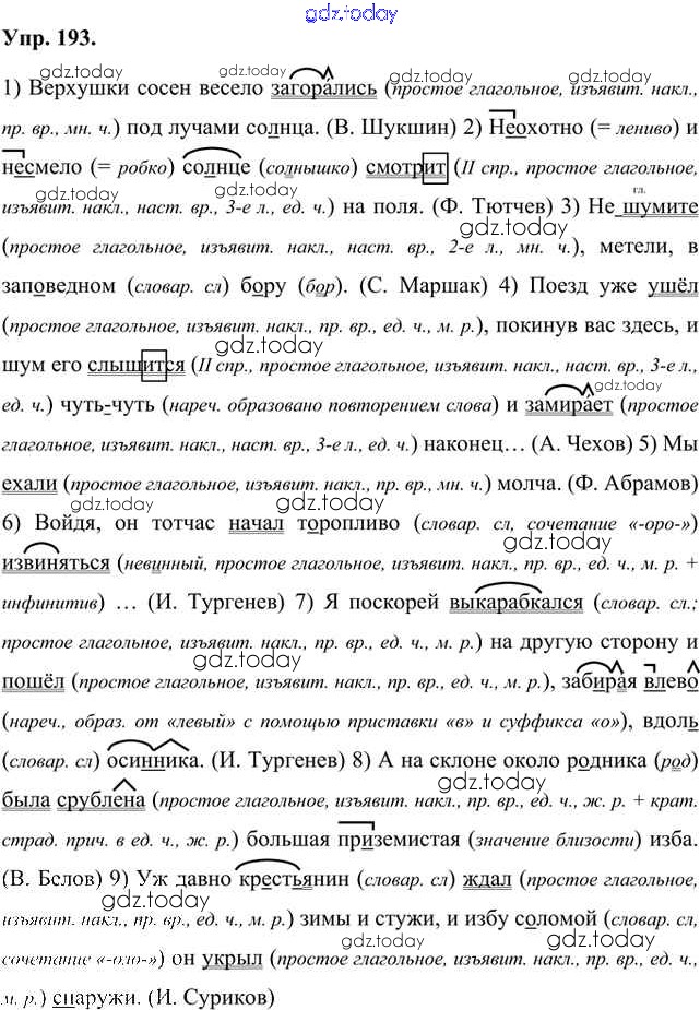 На страницах сайта gdz.today вы найдете учебный и вспомогательный материал, направленный на улучшения знаний школьной программы. ГДЗ - онлайн мир знаний Упражнения Часть 1 (решение) 193 Учебнику по Русскому языку для 8 класса Быстрова, Кибирева Русское слово Инновационная школа 2019