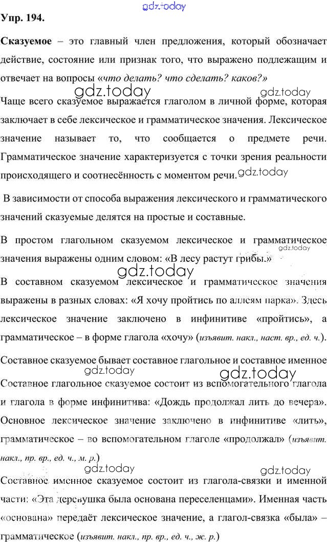 На страницах сайта gdz.today вы найдете учебный и вспомогательный материал, направленный на улучшения знаний школьной программы. ГДЗ - онлайн мир знаний Упражнения Часть 1 (решение) 194 Учебнику по Русскому языку для 8 класса Быстрова, Кибирева Русское слово Инновационная школа 2019