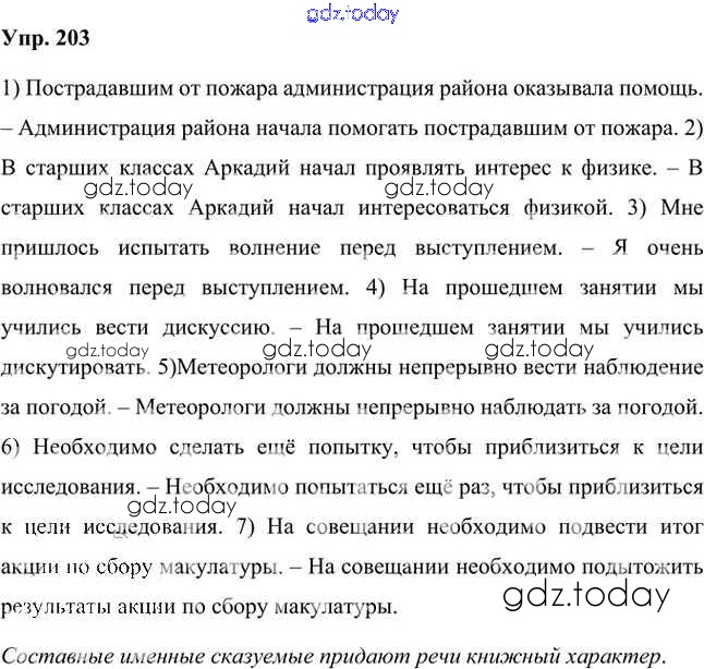 На страницах сайта gdz.today вы найдете учебный и вспомогательный материал, направленный на улучшения знаний школьной программы. ГДЗ - онлайн мир знаний Упражнения Часть 1 (решение) 203 Учебнику по Русскому языку для 8 класса Быстрова, Кибирева Русское слово Инновационная школа 2019