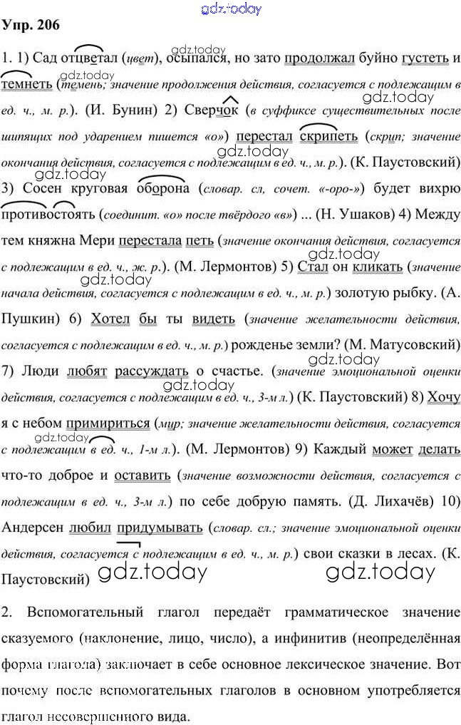 На страницах сайта gdz.today вы найдете учебный и вспомогательный материал, направленный на улучшения знаний школьной программы. ГДЗ - онлайн мир знаний Упражнения Часть 1 (решение) 206 Учебнику по Русскому языку для 8 класса Быстрова, Кибирева Русское слово Инновационная школа 2019