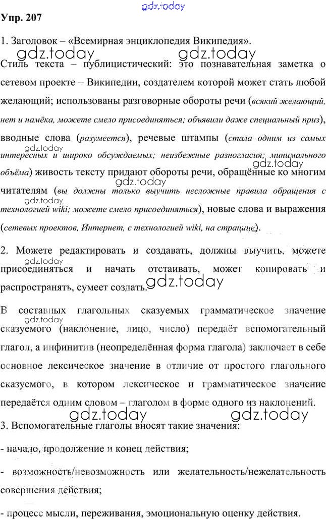 На страницах сайта gdz.today вы найдете учебный и вспомогательный материал, направленный на улучшения знаний школьной программы. ГДЗ - онлайн мир знаний Упражнения Часть 1 (решение) 207 Учебнику по Русскому языку для 8 класса Быстрова, Кибирева Русское слово Инновационная школа 2019