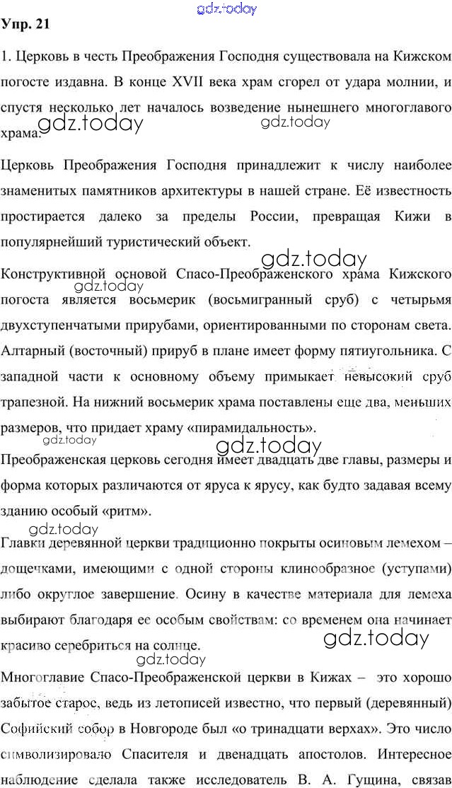 На страницах сайта gdz.today вы найдете учебный и вспомогательный материал, направленный на улучшения знаний школьной программы. ГДЗ - онлайн мир знаний Упражнения Часть 1 (решение) 21 Учебнику по Русскому языку для 8 класса Быстрова, Кибирева Русское слово Инновационная школа 2019