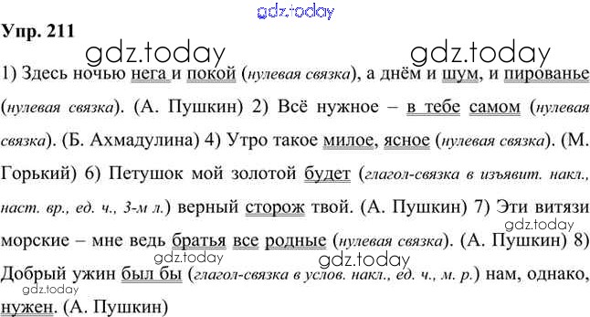На страницах сайта gdz.today вы найдете учебный и вспомогательный материал, направленный на улучшения знаний школьной программы. ГДЗ - онлайн мир знаний Упражнения Часть 1 (решение) 211 Учебнику по Русскому языку для 8 класса Быстрова, Кибирева Русское слово Инновационная школа 2019