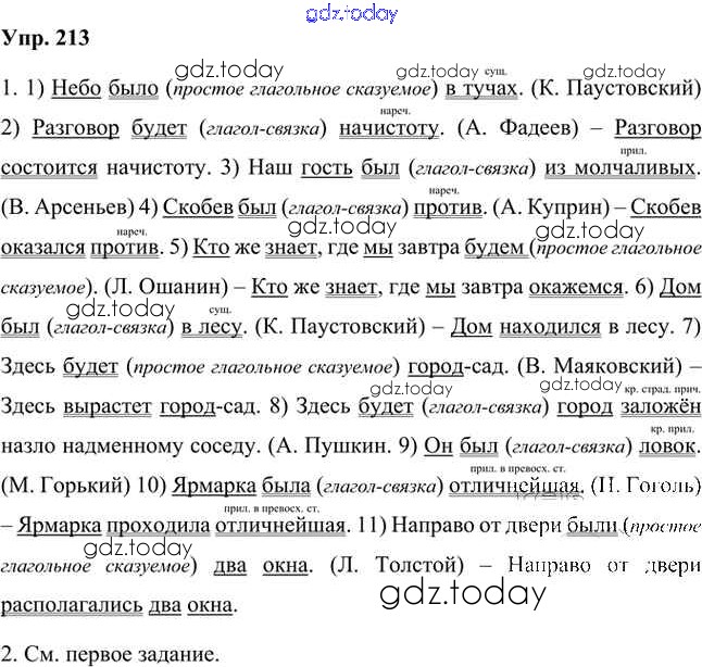 На страницах сайта gdz.today вы найдете учебный и вспомогательный материал, направленный на улучшения знаний школьной программы. ГДЗ - онлайн мир знаний Упражнения Часть 1 (решение) 213 Учебнику по Русскому языку для 8 класса Быстрова, Кибирева Русское слово Инновационная школа 2019