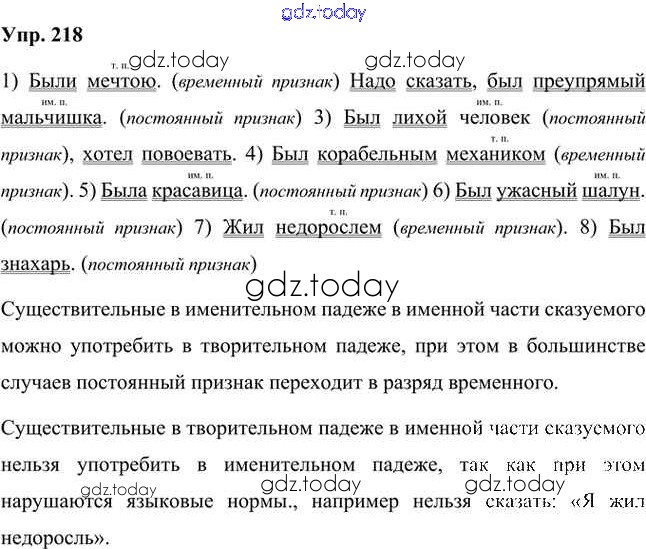 На страницах сайта gdz.today вы найдете учебный и вспомогательный материал, направленный на улучшения знаний школьной программы. ГДЗ - онлайн мир знаний Упражнения Часть 1 (решение) 218 Учебнику по Русскому языку для 8 класса Быстрова, Кибирева Русское слово Инновационная школа 2019