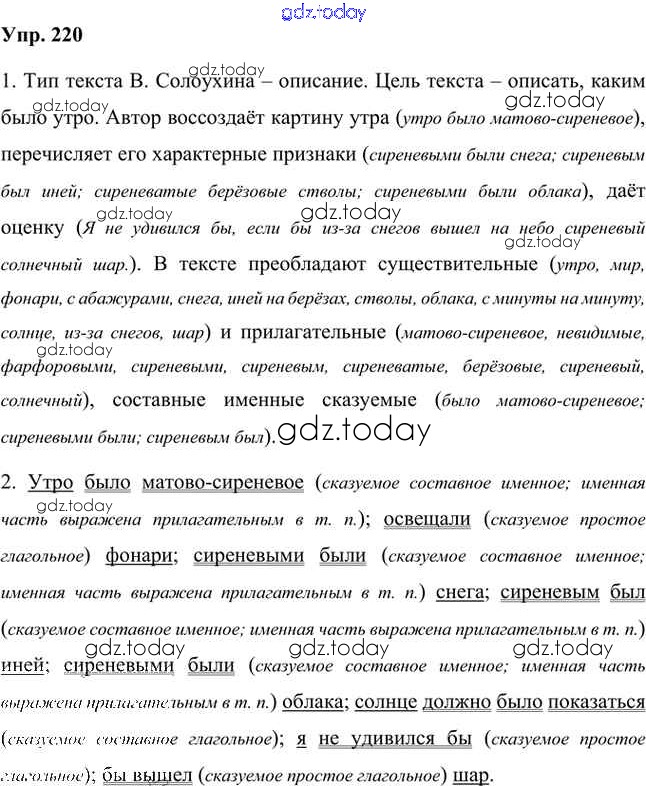 На страницах сайта gdz.today вы найдете учебный и вспомогательный материал, направленный на улучшения знаний школьной программы. ГДЗ - онлайн мир знаний Упражнения Часть 1 (решение) 220 Учебнику по Русскому языку для 8 класса Быстрова, Кибирева Русское слово Инновационная школа 2019