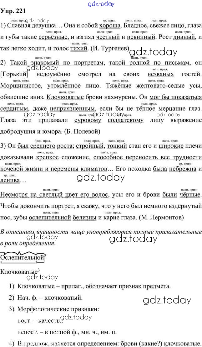 На страницах сайта gdz.today вы найдете учебный и вспомогательный материал, направленный на улучшения знаний школьной программы. ГДЗ - онлайн мир знаний Упражнения Часть 1 (решение) 221 Учебнику по Русскому языку для 8 класса Быстрова, Кибирева Русское слово Инновационная школа 2019