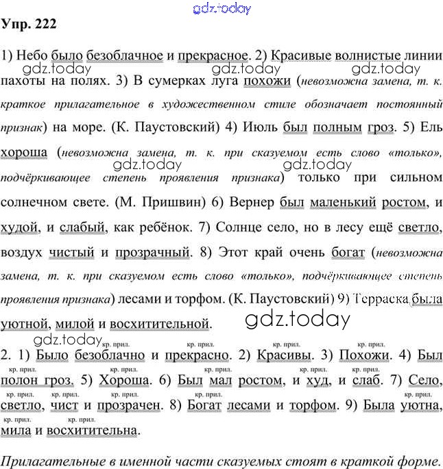 На страницах сайта gdz.today вы найдете учебный и вспомогательный материал, направленный на улучшения знаний школьной программы. ГДЗ - онлайн мир знаний Упражнения Часть 1 (решение) 222 Учебнику по Русскому языку для 8 класса Быстрова, Кибирева Русское слово Инновационная школа 2019
