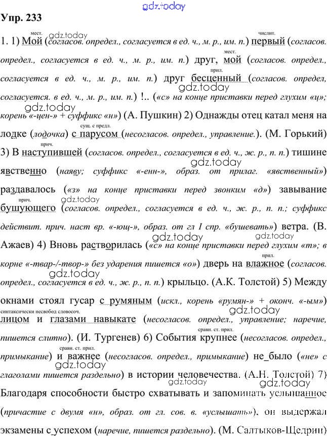 На страницах сайта gdz.today вы найдете учебный и вспомогательный материал, направленный на улучшения знаний школьной программы. ГДЗ - онлайн мир знаний Упражнения Часть 1 (решение) 233 Учебнику по Русскому языку для 8 класса Быстрова, Кибирева Русское слово Инновационная школа 2019