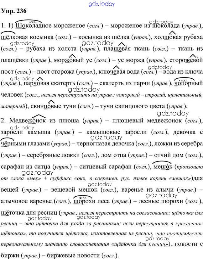 На страницах сайта gdz.today вы найдете учебный и вспомогательный материал, направленный на улучшения знаний школьной программы. ГДЗ - онлайн мир знаний Упражнения Часть 1 (решение) 236 Учебнику по Русскому языку для 8 класса Быстрова, Кибирева Русское слово Инновационная школа 2019