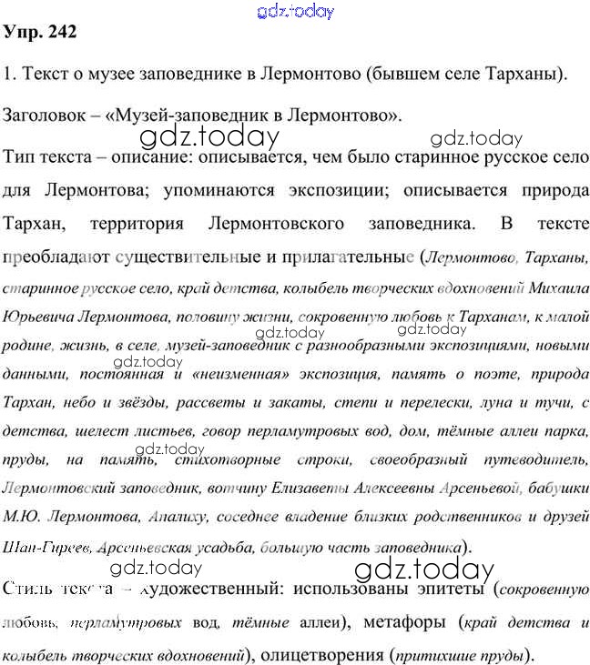 На страницах сайта gdz.today вы найдете учебный и вспомогательный материал, направленный на улучшения знаний школьной программы. ГДЗ - онлайн мир знаний Упражнения Часть 1 (решение) 242 Учебнику по Русскому языку для 8 класса Быстрова, Кибирева Русское слово Инновационная школа 2019