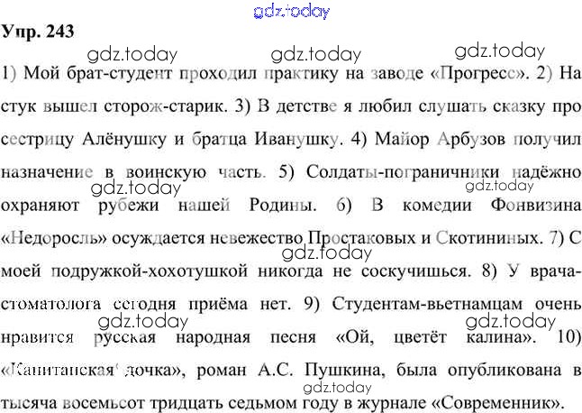 На страницах сайта gdz.today вы найдете учебный и вспомогательный материал, направленный на улучшения знаний школьной программы. ГДЗ - онлайн мир знаний Упражнения Часть 1 (решение) 243 Учебнику по Русскому языку для 8 класса Быстрова, Кибирева Русское слово Инновационная школа 2019