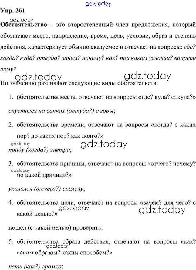 На страницах сайта gdz.today вы найдете учебный и вспомогательный материал, направленный на улучшения знаний школьной программы. ГДЗ - онлайн мир знаний Упражнения Часть 1 (решение) 261 Учебнику по Русскому языку для 8 класса Быстрова, Кибирева Русское слово Инновационная школа 2019