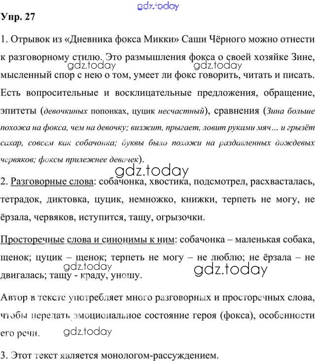На страницах сайта gdz.today вы найдете учебный и вспомогательный материал, направленный на улучшения знаний школьной программы. ГДЗ - онлайн мир знаний Упражнения Часть 1 (решение) 27 Учебнику по Русскому языку для 8 класса Быстрова, Кибирева Русское слово Инновационная школа 2019
