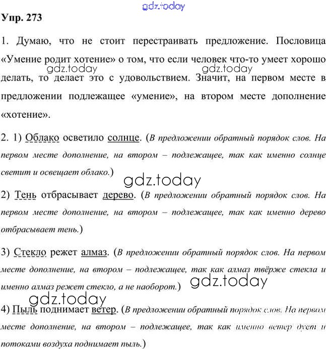 На страницах сайта gdz.today вы найдете учебный и вспомогательный материал, направленный на улучшения знаний школьной программы. ГДЗ - онлайн мир знаний Упражнения Часть 1 (решение) 273 Учебнику по Русскому языку для 8 класса Быстрова, Кибирева Русское слово Инновационная школа 2019