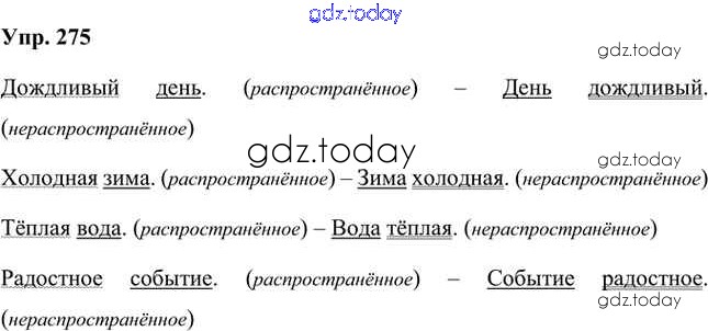 На страницах сайта gdz.today вы найдете учебный и вспомогательный материал, направленный на улучшения знаний школьной программы. ГДЗ - онлайн мир знаний Упражнения Часть 1 (решение) 275 Учебнику по Русскому языку для 8 класса Быстрова, Кибирева Русское слово Инновационная школа 2019