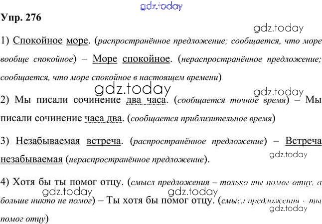 На страницах сайта gdz.today вы найдете учебный и вспомогательный материал, направленный на улучшения знаний школьной программы. ГДЗ - онлайн мир знаний Упражнения Часть 1 (решение) 276 Учебнику по Русскому языку для 8 класса Быстрова, Кибирева Русское слово Инновационная школа 2019