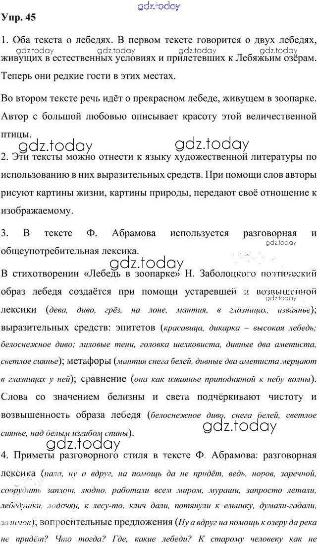 На страницах сайта gdz.today вы найдете учебный и вспомогательный материал, направленный на улучшения знаний школьной программы. ГДЗ - онлайн мир знаний Упражнения Часть 1 (решение) 45 Учебнику по Русскому языку для 8 класса Быстрова, Кибирева Русское слово Инновационная школа 2019