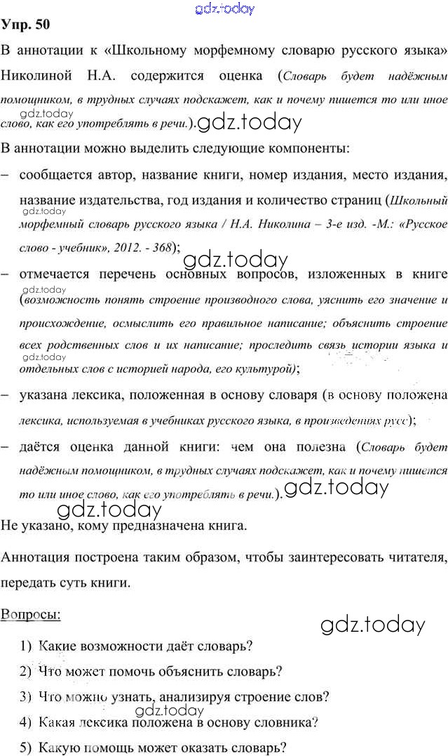 На страницах сайта gdz.today вы найдете учебный и вспомогательный материал, направленный на улучшения знаний школьной программы. ГДЗ - онлайн мир знаний Упражнения Часть 1 (решение) 50 Учебнику по Русскому языку для 8 класса Быстрова, Кибирева Русское слово Инновационная школа 2019
