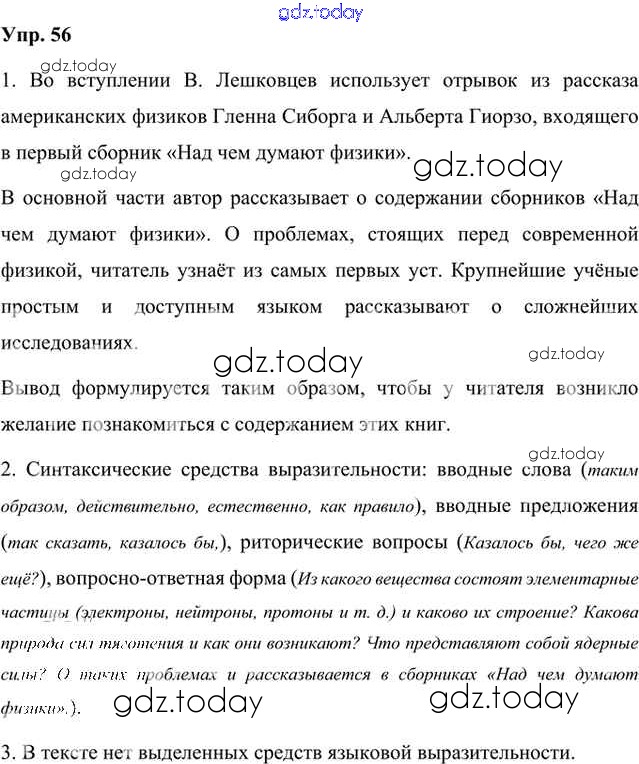 На страницах сайта gdz.today вы найдете учебный и вспомогательный материал, направленный на улучшения знаний школьной программы. ГДЗ - онлайн мир знаний Упражнения Часть 1 (решение) 56 Учебнику по Русскому языку для 8 класса Быстрова, Кибирева Русское слово Инновационная школа 2019