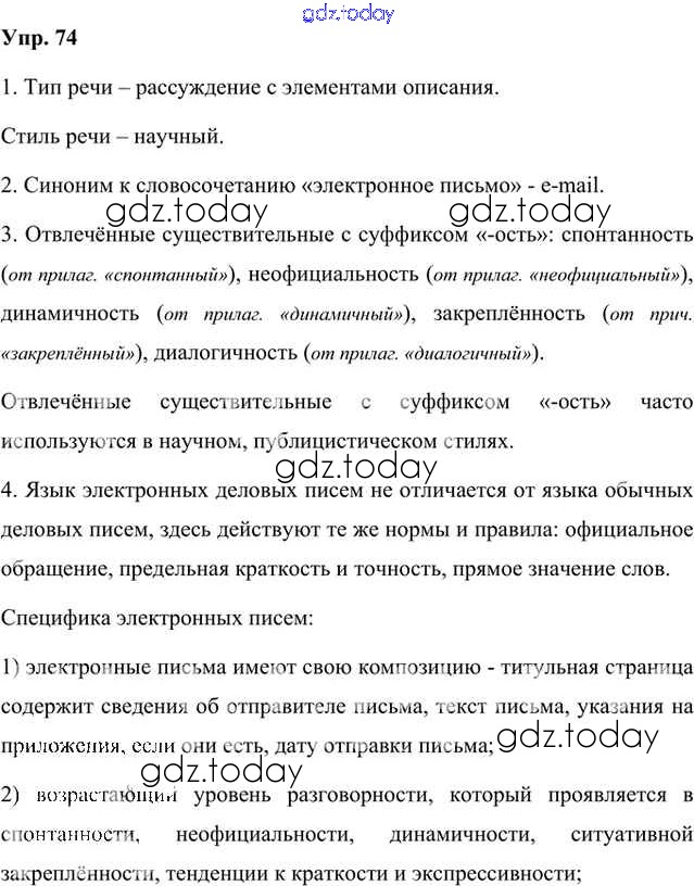 На страницах сайта gdz.today вы найдете учебный и вспомогательный материал, направленный на улучшения знаний школьной программы. ГДЗ - онлайн мир знаний Упражнения Часть 1 (решение) 74 Учебнику по Русскому языку для 8 класса Быстрова, Кибирева Русское слово Инновационная школа 2019