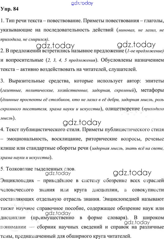 На страницах сайта gdz.today вы найдете учебный и вспомогательный материал, направленный на улучшения знаний школьной программы. ГДЗ - онлайн мир знаний Упражнения Часть 1 (решение) 84 Учебнику по Русскому языку для 8 класса Быстрова, Кибирева Русское слово Инновационная школа 2019
