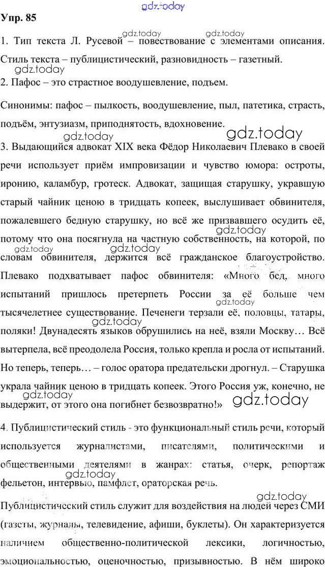 На страницах сайта gdz.today вы найдете учебный и вспомогательный материал, направленный на улучшения знаний школьной программы. ГДЗ - онлайн мир знаний Упражнения Часть 1 (решение) 85 Учебнику по Русскому языку для 8 класса Быстрова, Кибирева Русское слово Инновационная школа 2019