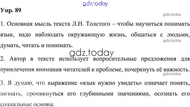 На страницах сайта gdz.today вы найдете учебный и вспомогательный материал, направленный на улучшения знаний школьной программы. ГДЗ - онлайн мир знаний Упражнения Часть 1 (решение) 89 Учебнику по Русскому языку для 8 класса Быстрова, Кибирева Русское слово Инновационная школа 2019