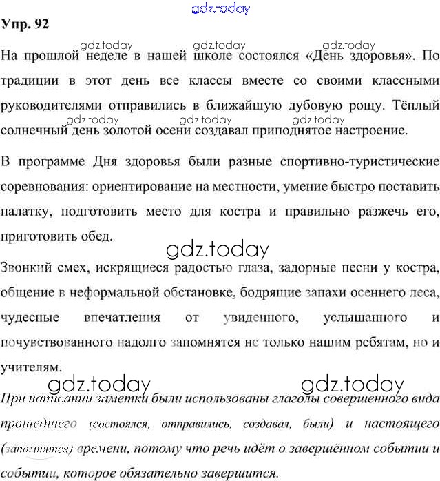 На страницах сайта gdz.today вы найдете учебный и вспомогательный материал, направленный на улучшения знаний школьной программы. ГДЗ - онлайн мир знаний Упражнения Часть 1 (решение) 92 Учебнику по Русскому языку для 8 класса Быстрова, Кибирева Русское слово Инновационная школа 2019