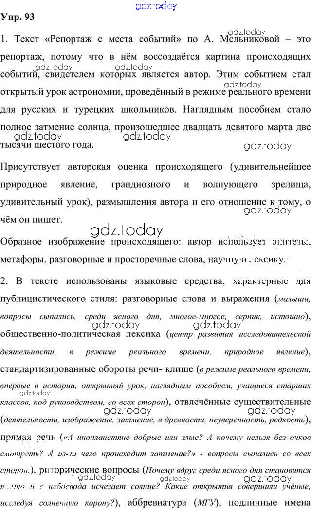 На страницах сайта gdz.today вы найдете учебный и вспомогательный материал, направленный на улучшения знаний школьной программы. ГДЗ - онлайн мир знаний Упражнения Часть 1 (решение) 93 Учебнику по Русскому языку для 8 класса Быстрова, Кибирева Русское слово Инновационная школа 2019