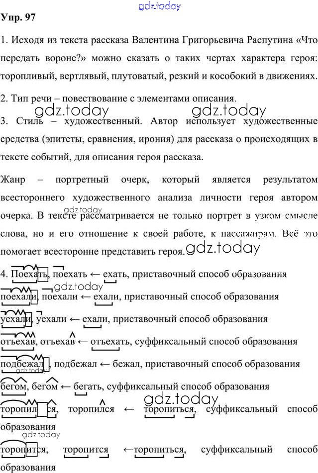 На страницах сайта gdz.today вы найдете учебный и вспомогательный материал, направленный на улучшения знаний школьной программы. ГДЗ - онлайн мир знаний Упражнения Часть 1 (решение) 97 Учебнику по Русскому языку для 8 класса Быстрова, Кибирева Русское слово Инновационная школа 2019