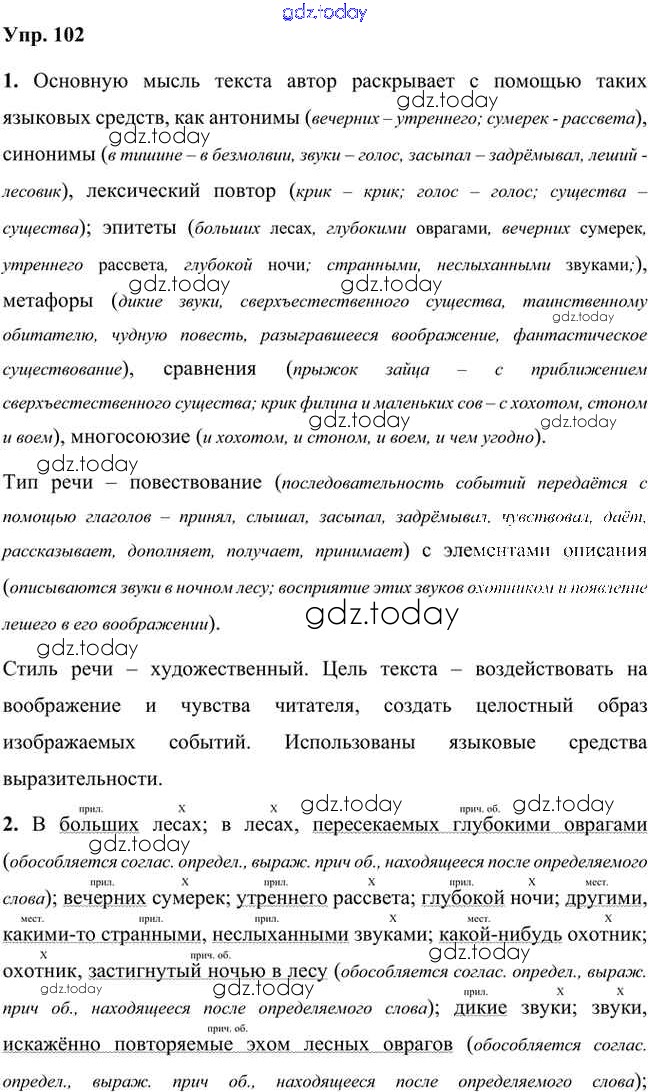 На страницах сайта gdz.today вы найдете учебный и вспомогательный материал, направленный на улучшения знаний школьной программы. ГДЗ - онлайн мир знаний Упражнения Часть 2 (решение) 102 Учебнику по Русскому языку для 8 класса Быстрова, Кибирева Русское слово Инновационная школа 2019
