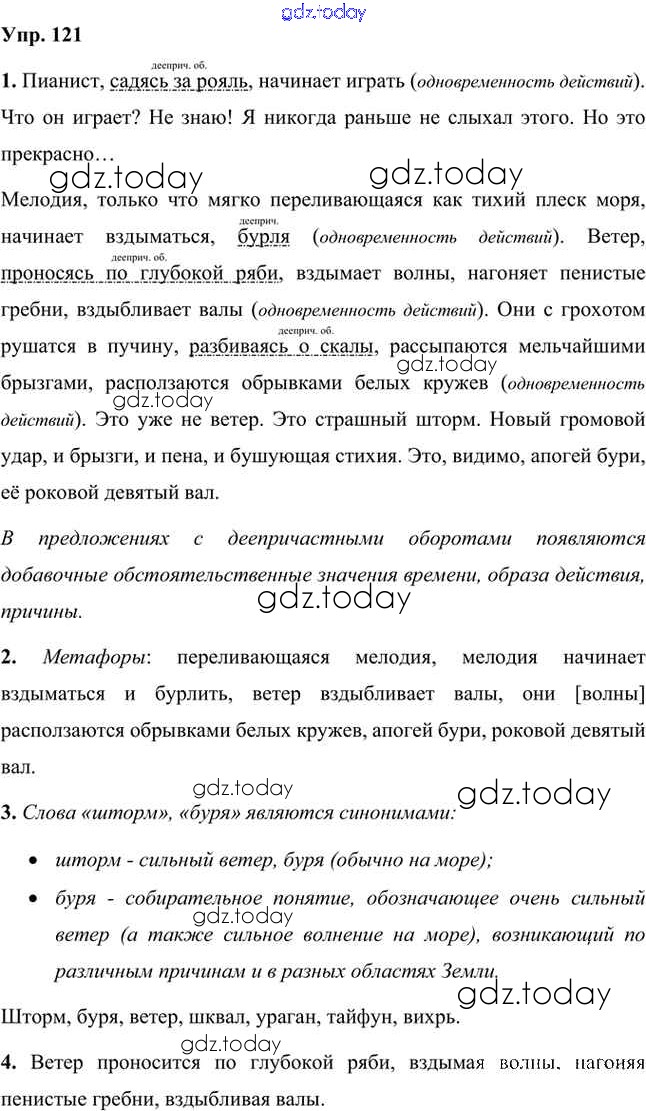 На страницах сайта gdz.today вы найдете учебный и вспомогательный материал, направленный на улучшения знаний школьной программы. ГДЗ - онлайн мир знаний Упражнения Часть 2 (решение) 121 Учебнику по Русскому языку для 8 класса Быстрова, Кибирева Русское слово Инновационная школа 2019