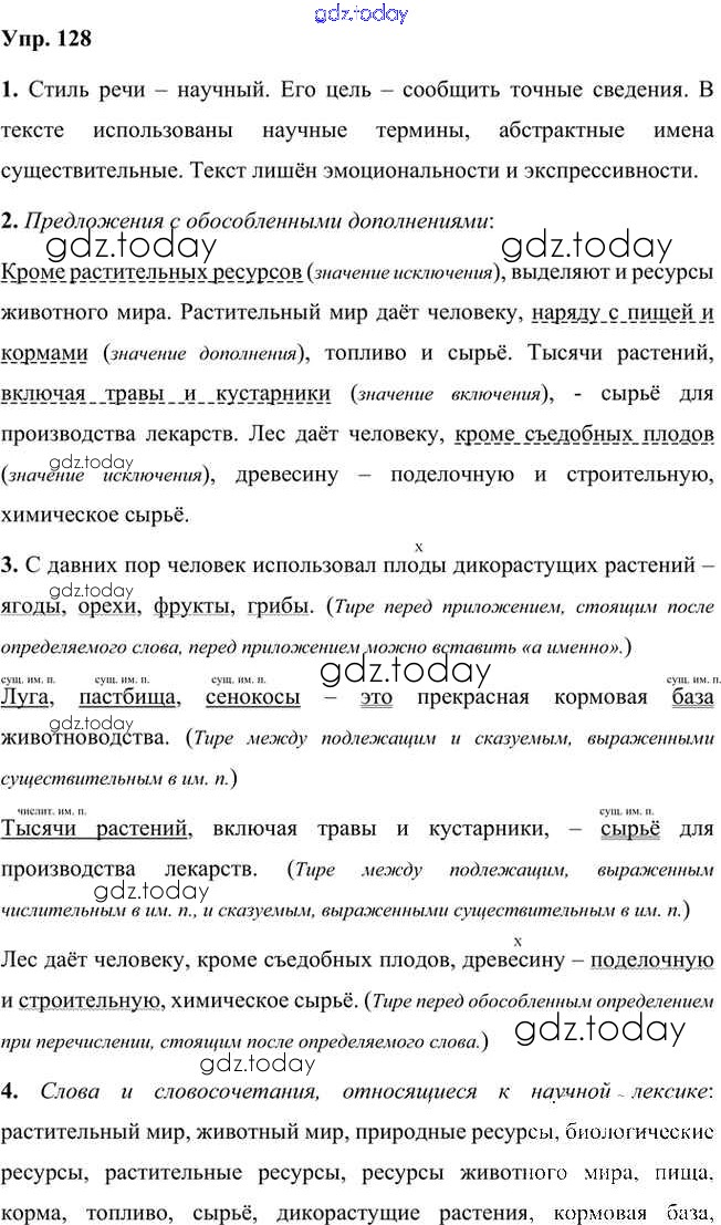 На страницах сайта gdz.today вы найдете учебный и вспомогательный материал, направленный на улучшения знаний школьной программы. ГДЗ - онлайн мир знаний Упражнения Часть 2 (решение) 128 Учебнику по Русскому языку для 8 класса Быстрова, Кибирева Русское слово Инновационная школа 2019