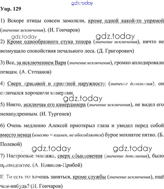 На страницах сайта gdz.today вы найдете учебный и вспомогательный материал, направленный на улучшения знаний школьной программы. ГДЗ - онлайн мир знаний Упражнения Часть 2 (решение) 129 Учебнику по Русскому языку для 8 класса Быстрова, Кибирева Русское слово Инновационная школа 2019