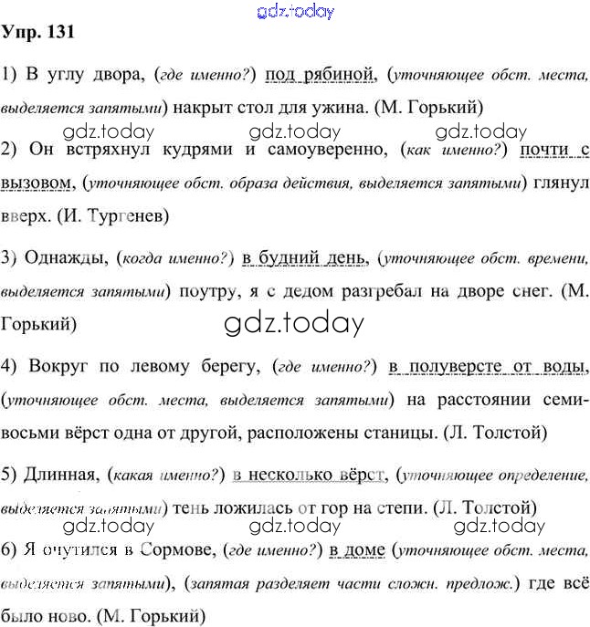На страницах сайта gdz.today вы найдете учебный и вспомогательный материал, направленный на улучшения знаний школьной программы. ГДЗ - онлайн мир знаний Упражнения Часть 2 (решение) 131 Учебнику по Русскому языку для 8 класса Быстрова, Кибирева Русское слово Инновационная школа 2019