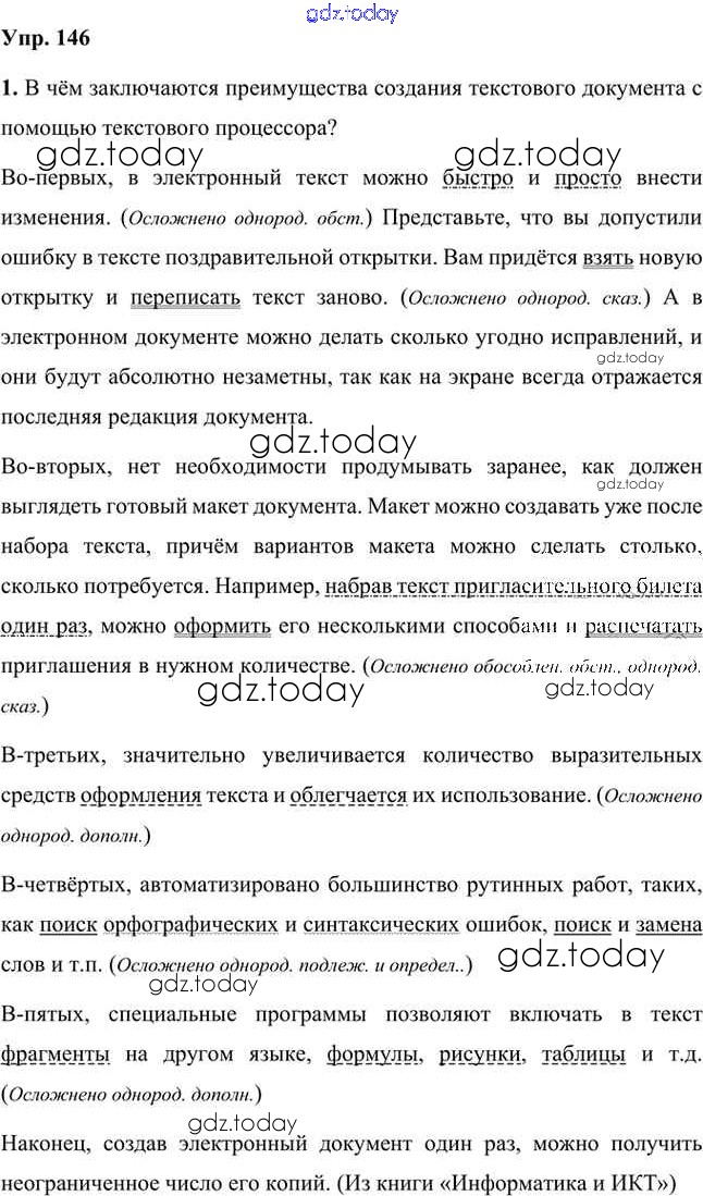 На страницах сайта gdz.today вы найдете учебный и вспомогательный материал, направленный на улучшения знаний школьной программы. ГДЗ - онлайн мир знаний Упражнения Часть 2 (решение) 146 Учебнику по Русскому языку для 8 класса Быстрова, Кибирева Русское слово Инновационная школа 2019