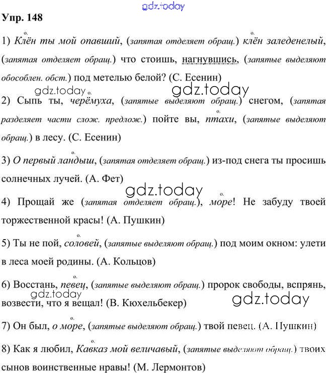 На страницах сайта gdz.today вы найдете учебный и вспомогательный материал, направленный на улучшения знаний школьной программы. ГДЗ - онлайн мир знаний Упражнения Часть 2 (решение) 148 Учебнику по Русскому языку для 8 класса Быстрова, Кибирева Русское слово Инновационная школа 2019