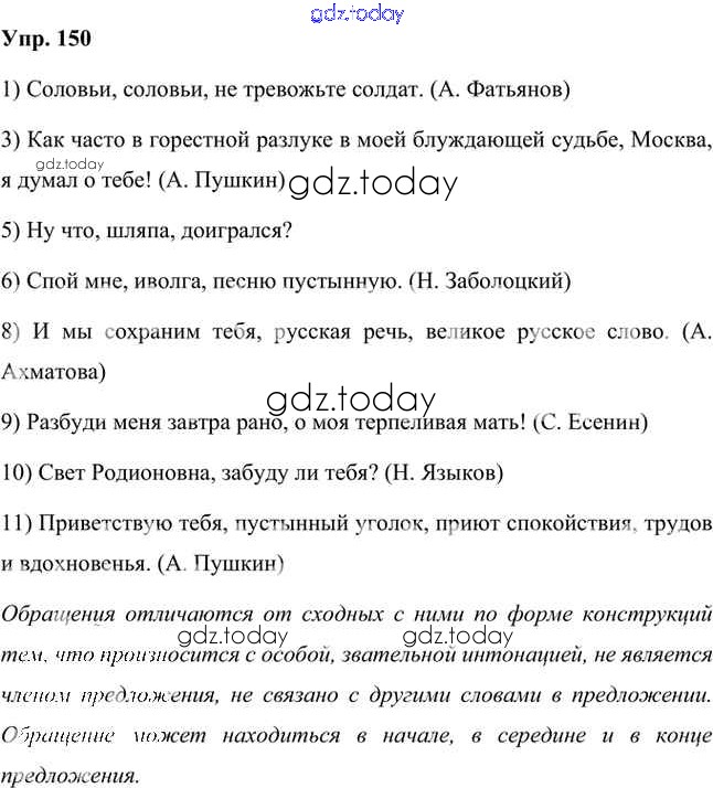 На страницах сайта gdz.today вы найдете учебный и вспомогательный материал, направленный на улучшения знаний школьной программы. ГДЗ - онлайн мир знаний Упражнения Часть 2 (решение) 150 Учебнику по Русскому языку для 8 класса Быстрова, Кибирева Русское слово Инновационная школа 2019
