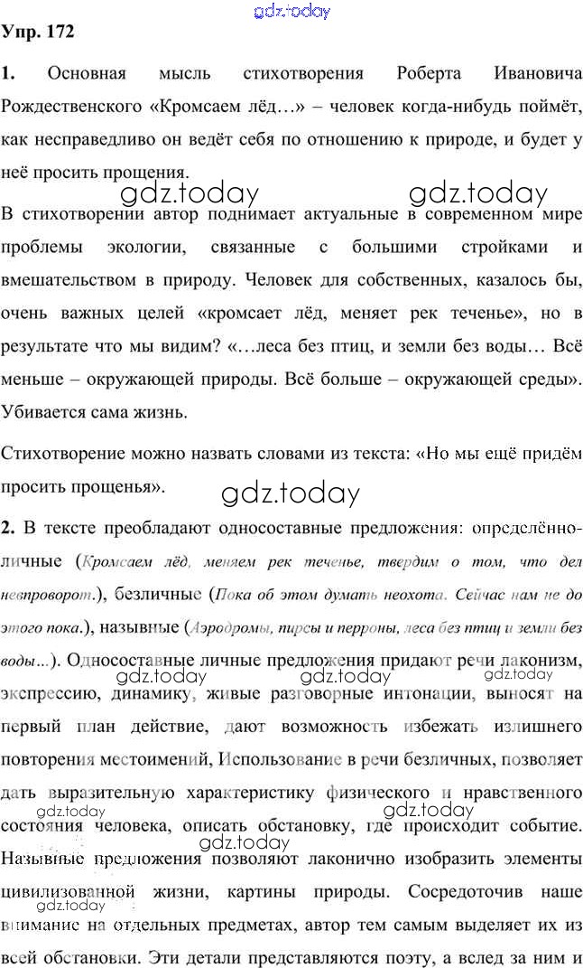На страницах сайта gdz.today вы найдете учебный и вспомогательный материал, направленный на улучшения знаний школьной программы. ГДЗ - онлайн мир знаний Упражнения Часть 2 (решение) 172 Учебнику по Русскому языку для 8 класса Быстрова, Кибирева Русское слово Инновационная школа 2019