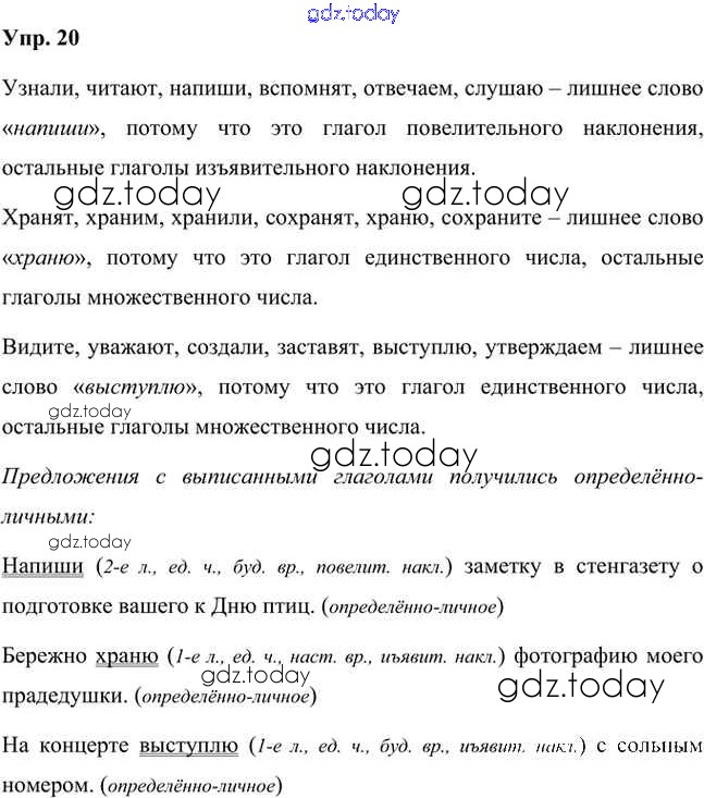 На страницах сайта gdz.today вы найдете учебный и вспомогательный материал, направленный на улучшения знаний школьной программы. ГДЗ - онлайн мир знаний Упражнения Часть 2 (решение) 20 Учебнику по Русскому языку для 8 класса Быстрова, Кибирева Русское слово Инновационная школа 2019