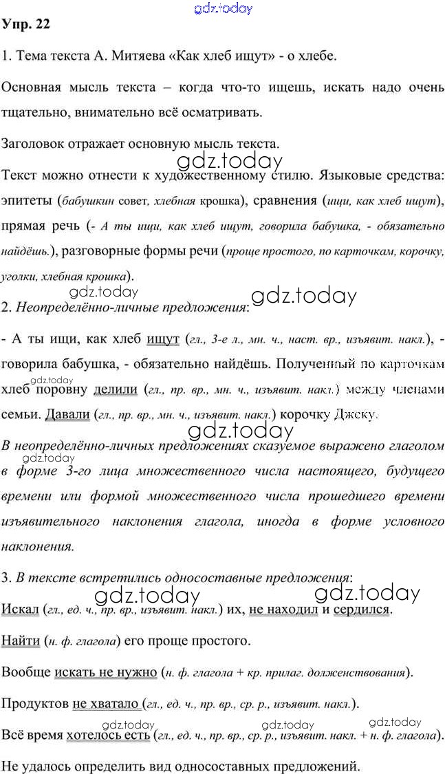 На страницах сайта gdz.today вы найдете учебный и вспомогательный материал, направленный на улучшения знаний школьной программы. ГДЗ - онлайн мир знаний Упражнения Часть 2 (решение) 22 Учебнику по Русскому языку для 8 класса Быстрова, Кибирева Русское слово Инновационная школа 2019