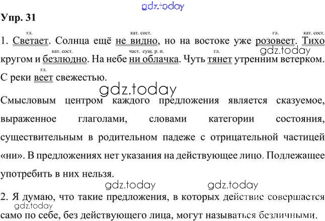 На страницах сайта gdz.today вы найдете учебный и вспомогательный материал, направленный на улучшения знаний школьной программы. ГДЗ - онлайн мир знаний Упражнения Часть 2 (решение) 31 Учебнику по Русскому языку для 8 класса Быстрова, Кибирева Русское слово Инновационная школа 2019