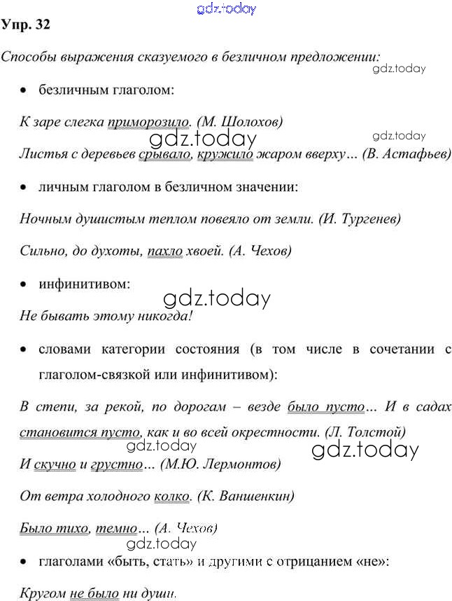 На страницах сайта gdz.today вы найдете учебный и вспомогательный материал, направленный на улучшения знаний школьной программы. ГДЗ - онлайн мир знаний Упражнения Часть 2 (решение) 32 Учебнику по Русскому языку для 8 класса Быстрова, Кибирева Русское слово Инновационная школа 2019
