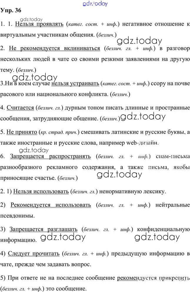 На страницах сайта gdz.today вы найдете учебный и вспомогательный материал, направленный на улучшения знаний школьной программы. ГДЗ - онлайн мир знаний Упражнения Часть 2 (решение) 36 Учебнику по Русскому языку для 8 класса Быстрова, Кибирева Русское слово Инновационная школа 2019
