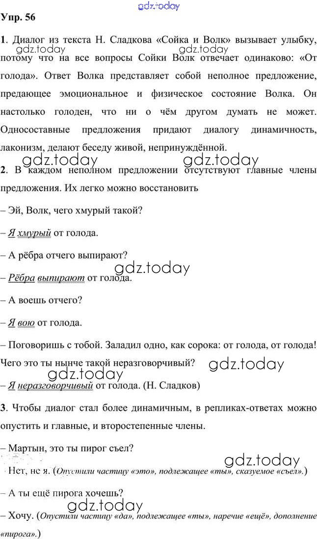 На страницах сайта gdz.today вы найдете учебный и вспомогательный материал, направленный на улучшения знаний школьной программы. ГДЗ - онлайн мир знаний Упражнения Часть 2 (решение) 56 Учебнику по Русскому языку для 8 класса Быстрова, Кибирева Русское слово Инновационная школа 2019