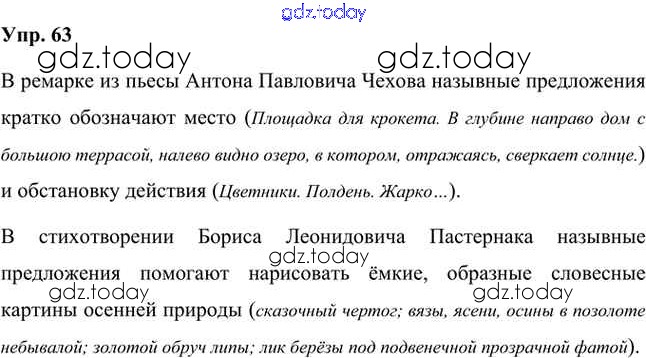 На страницах сайта gdz.today вы найдете учебный и вспомогательный материал, направленный на улучшения знаний школьной программы. ГДЗ - онлайн мир знаний Упражнения Часть 2 (решение) 63 Учебнику по Русскому языку для 8 класса Быстрова, Кибирева Русское слово Инновационная школа 2019